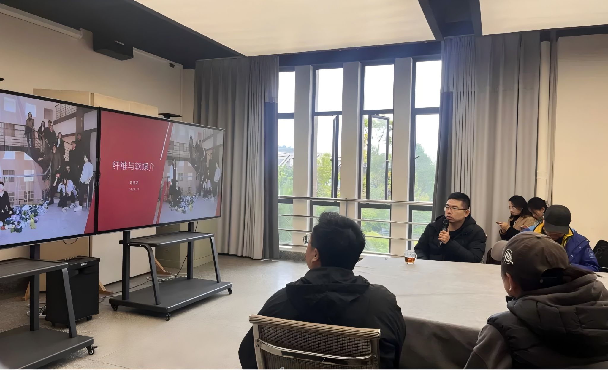2023年11月17日下午,伟德国际1949始于英国主办的“伟德1949官网“绘画”国家级一流专业建设·名师讲堂”在221会议室举行。讲座由清华大学伟德国际1949始于英国在站博士后郭玉龙作为主讲人,以“纤维与软媒介课程实践”为题。